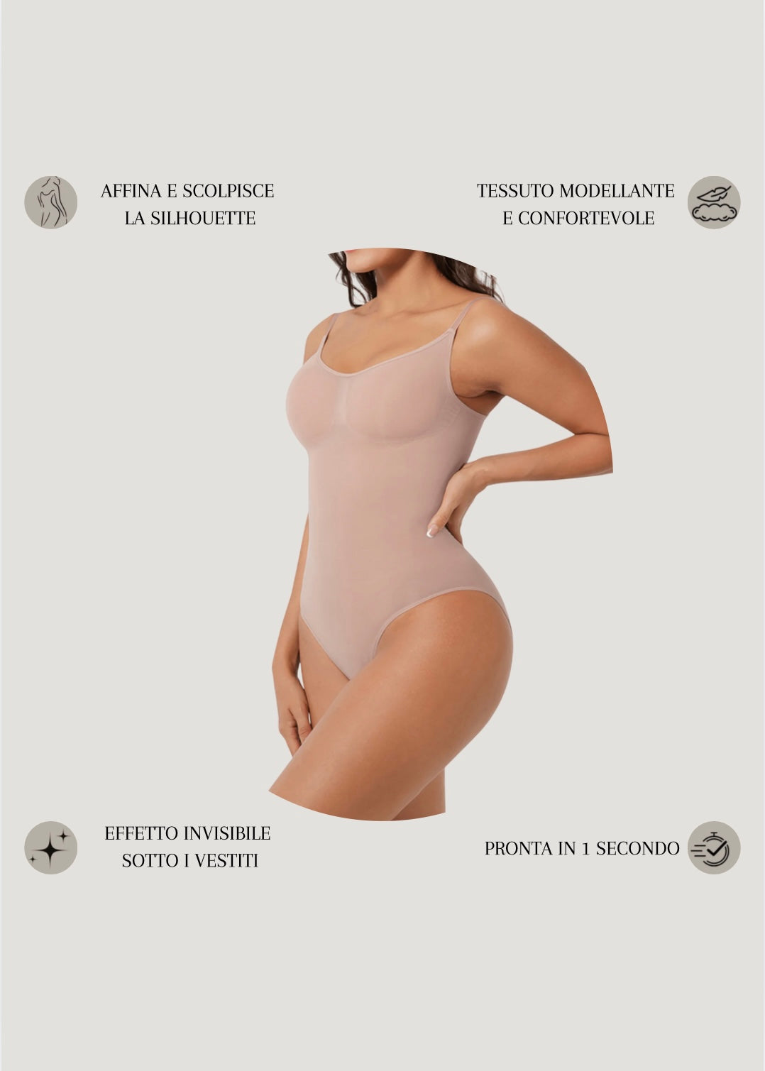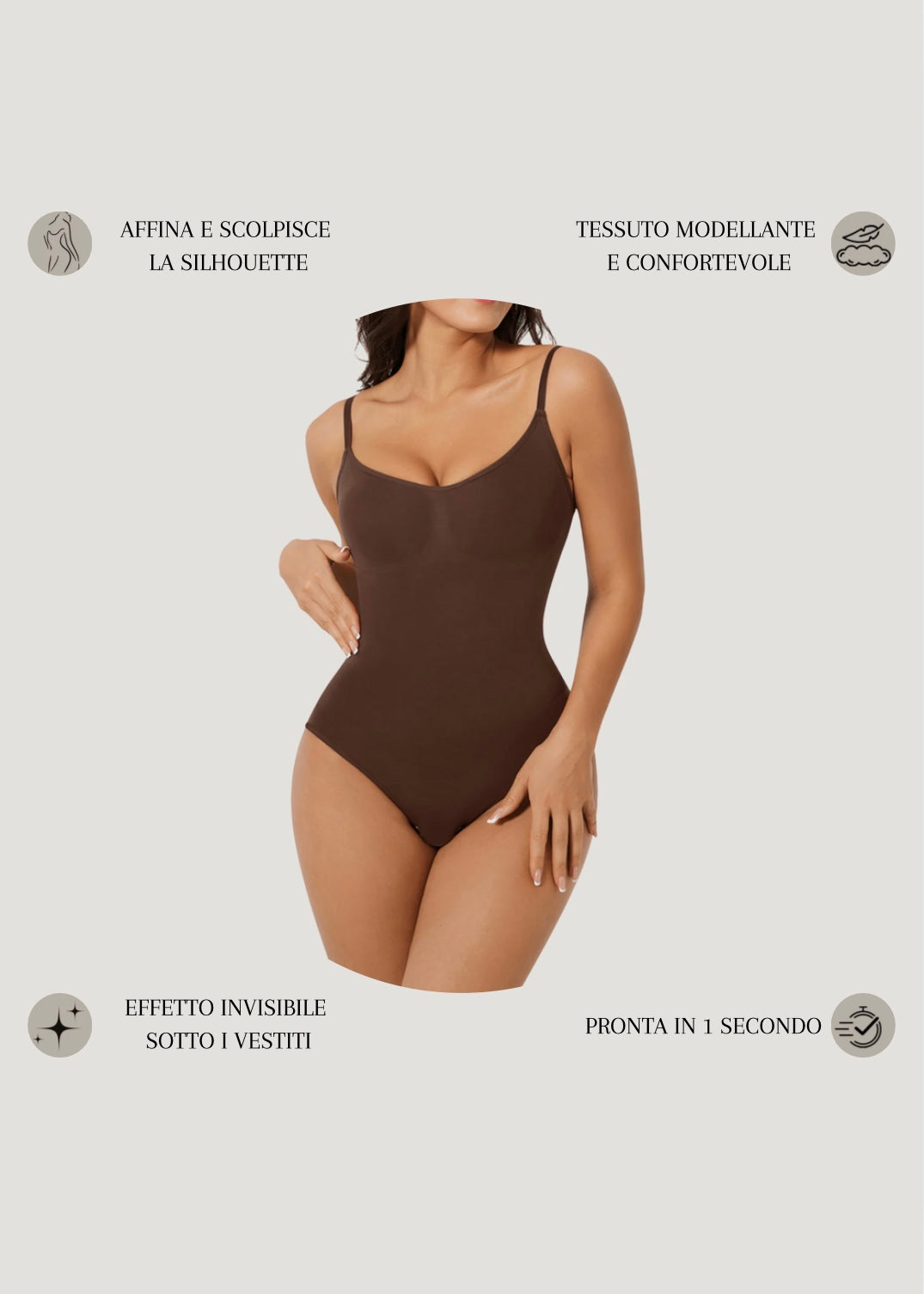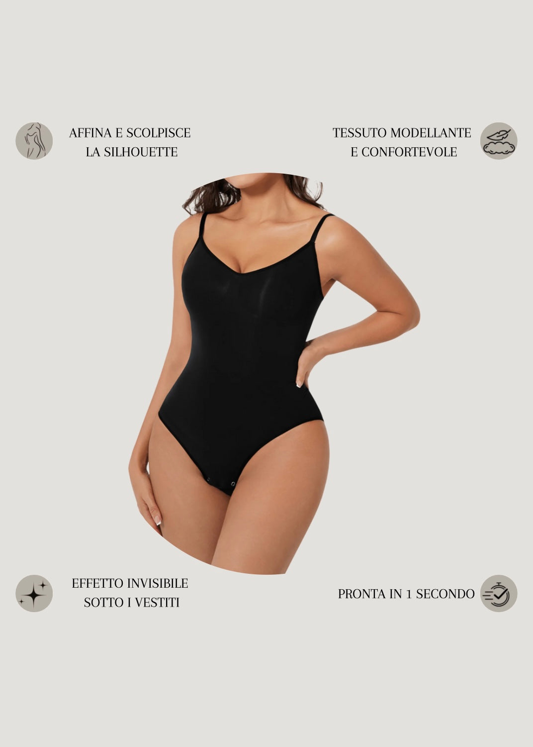 Il nostro body modellante unisce eleganza e comfort per valorizzare le tue curve in ogni momento della giornata. Indossalo e senti la differenza: più fiducia, più stile, più te stessa.