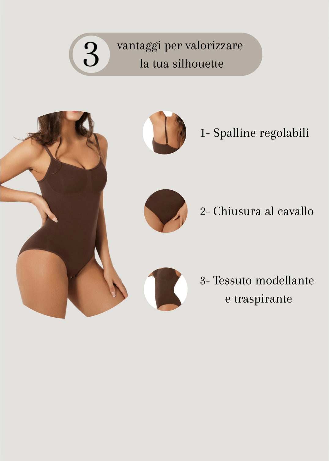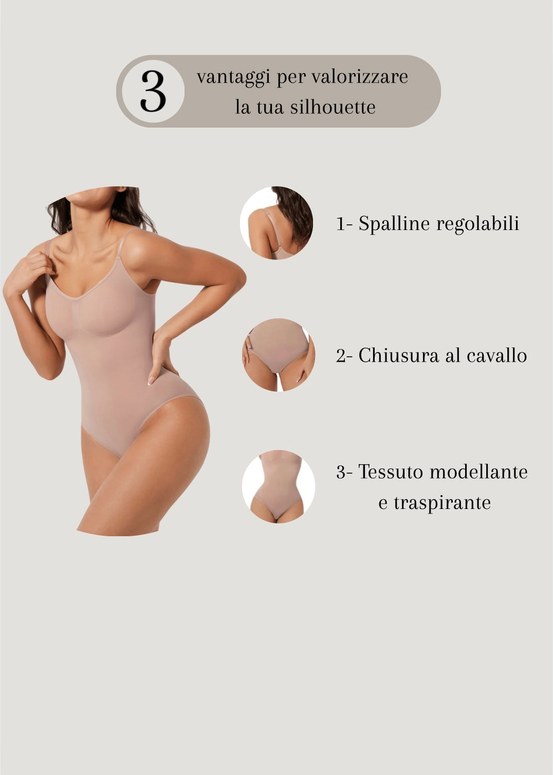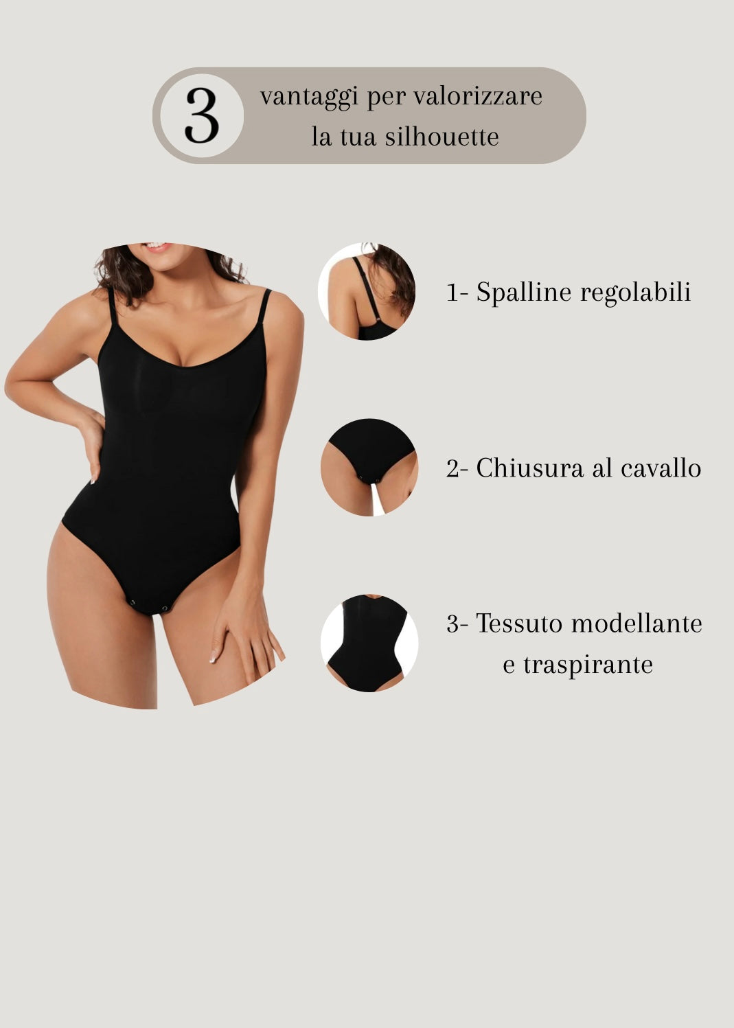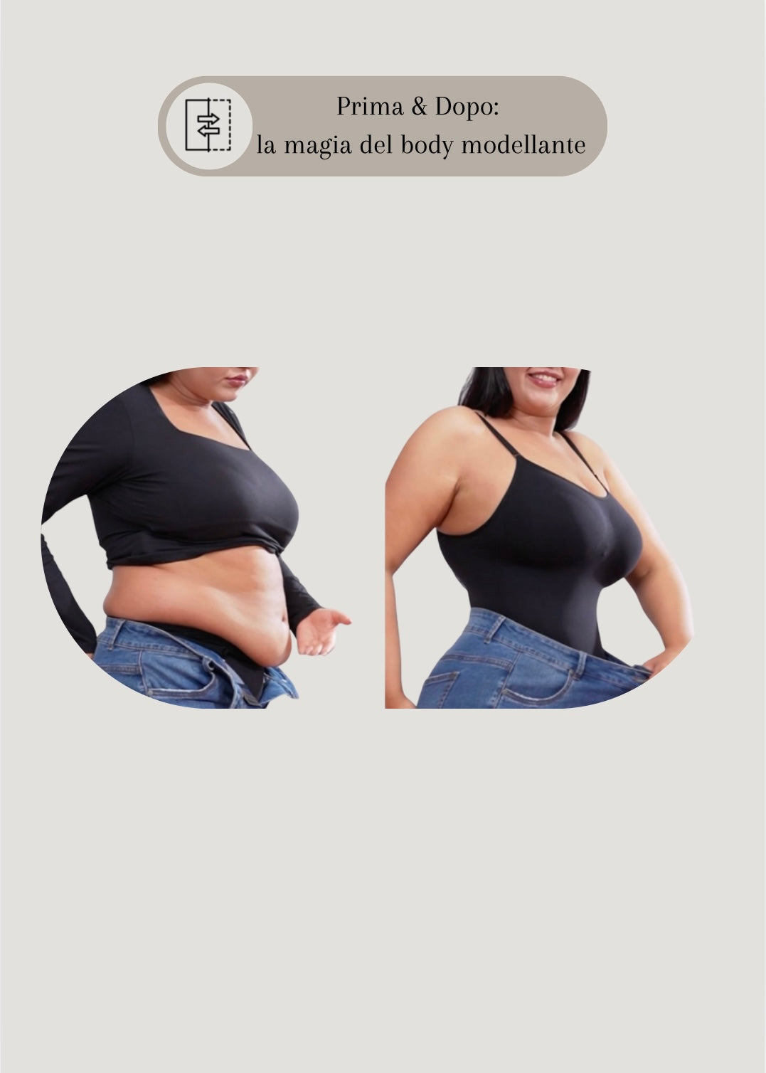 Il nostro body modellante unisce eleganza e comfort per valorizzare le tue curve in ogni momento della giornata. Indossalo e senti la differenza: più fiducia, più stile, più te stessa.